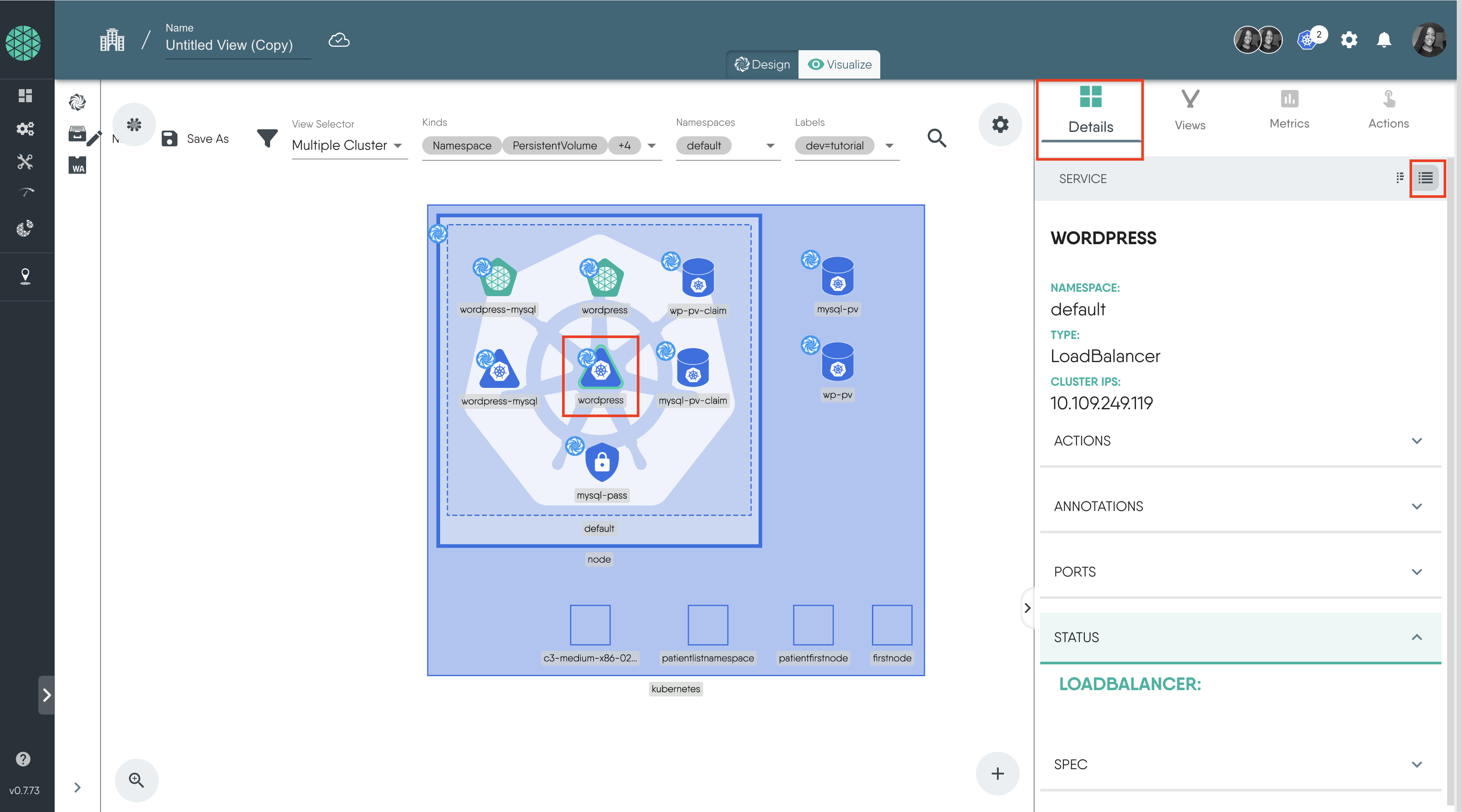 Deployment, Service, PersistentVolume, PersistentVolumeClaim and Secretdev=tutorialYou can also use the icons on the right sidebar to filter the resources.
